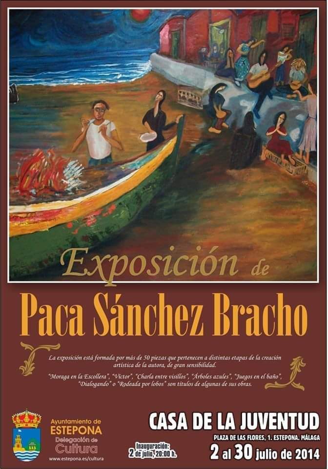 Organizada por el Ayuntamiento de Estepona tuvo lugar en la Sala de exposiciones de la Casa de la Cultura la exposición de pintura de mi hermana Paca que se llevó a cabo del 2 al 30 de julio del 2014.