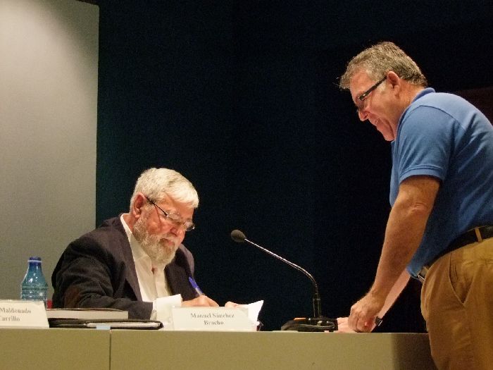 Anoche presenté en el Ateneo de Málaga mi nueva novela “BUSCANDO EL DIARIO DE JESÚS”. Me siento contento y pecando de vanidad, hasta orgulloso; y esto es así, porque al acto asistieron muchísimas personas que antes de la presentación me hubiese gustado que estuviesen y estuvieron: Las tres personas que hoy me hacen soñar, mis tres doctores que me han tratado y tratan esa enfermedad que a muchos les da miedo mencionar y a mí no, porque son enemigos vencibles- El Cáncer –Si siempre me parecieron que eran pura humanidad, hoy pienso que lo son mucho mas. Mis dos mejores amigos en diferentes momentos de mi vida, a los que de verdad quiero, Ramón Jesús Ruiz Lanzas- en la bonita etapa de los 17 años y Mariano Sánchez Bernal en la de los 21. Muchos compañeros del mundo de la enseñanza a los que hacía muchos años que no veía, que no nombro porque pueden escapárseme algunos. A entrañables amigos y compañeros de la política, entre ellos a mis viejos-no por la edad- Juan Ruíz, Rafael de la Cruz, Antonio Pelegrí y Eduardo Alarcón. A muchos amigos personales, otros tantos de facebook y un número importante que no conocía. También estuvieron presentes amigos de los medios de comunicación entre ellos Jesús Jaén de RTV Marbella y Pedro Medina, director de RNE en Málaga.
