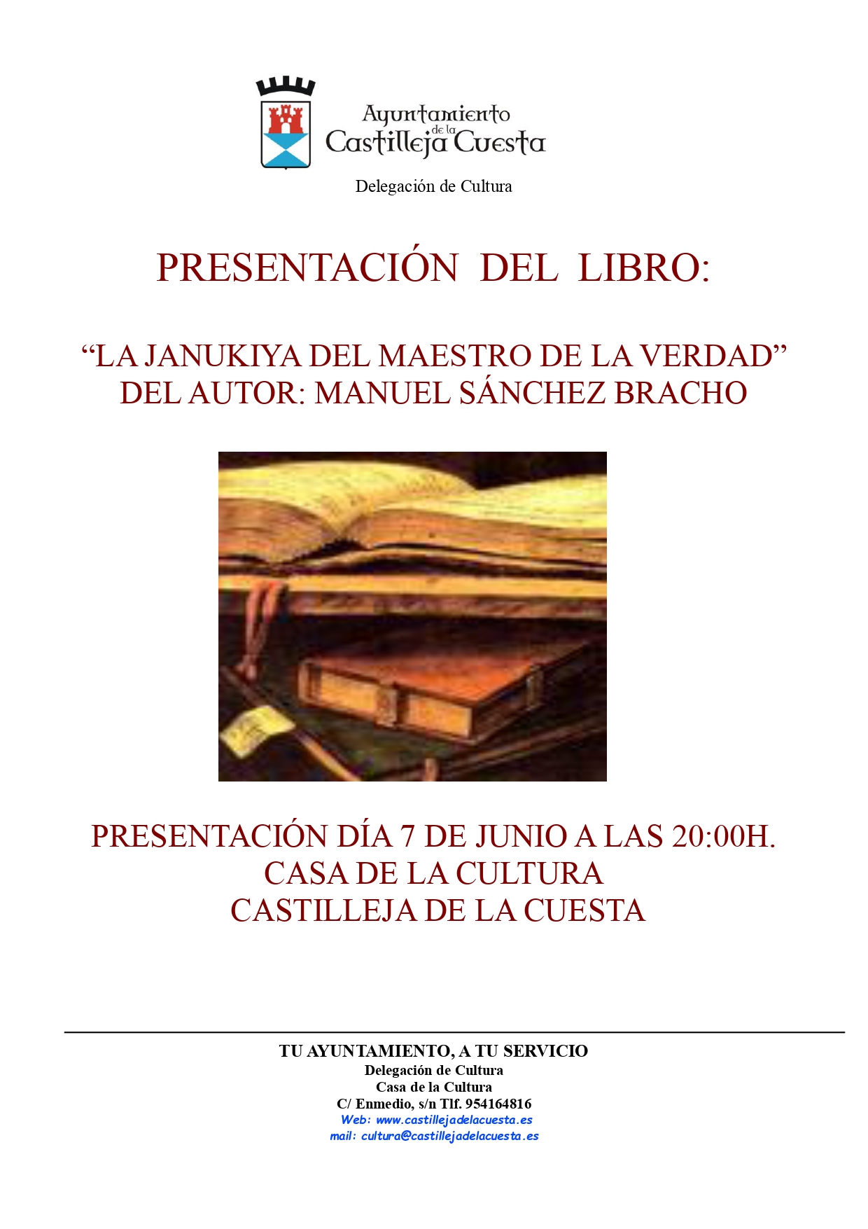 El pasado 7 de junio del 2012, tuvo lugar la presentación de la novela histórica " La Janukiya del kilo Maestro de la Verdad." del escritor y flamencologo Manuel Sánchez Bracho en el salón de actos de la Casa de la cultura del Ayuntamiento de Castilleja de la Cuesta con muchos lectores de este género literario.