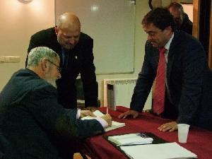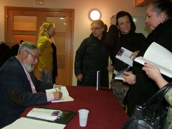 La mesa fue compartida, acompañando al autor el Alcalde de la ciudad Juan Manuel García Sacristán, la Concejala de Cultura María Escalante, el Abogado de Estado Juan José Fernández, que hizo el semblante personal del escritor y Javier Pérez que comento la obra poética.